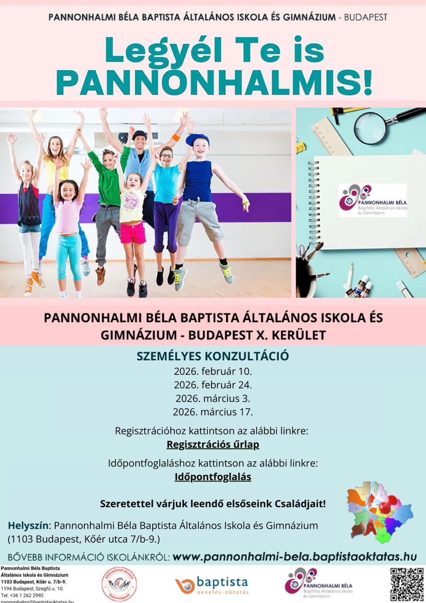 Várjuk szeretettel leendő elsős diákjaink családjait a Pannonhalmi Béla Baptista Általános Iskolában és Gimnáziumban!